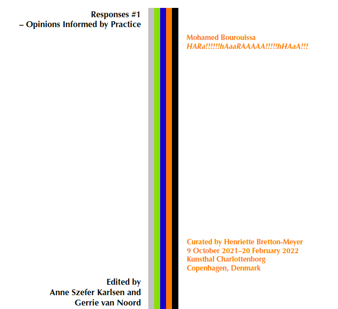 Having been invited for a workshop around writing and editing with the first cohort of the MA Curatorial Practice at the University of Bergen several years earlier, course directorAnne Szefer Karlsen invited me to work with a subsequent cohort on a publication that would comprise a text by each of them. Following an introduction by me and my approach to working with writers, Anne and I both responded to drafts. For this project all students visited the same exhibition and collective thought about their individual responses, the exhibition ‘HARa!!!!!!hAaaRAAAAA!!!!!hHAaA!!!’ with work by Mohamed Bourouissa at Kunsthal Charlottenburg on Copenhagen, curated by Henriette Bretton-Meyers.