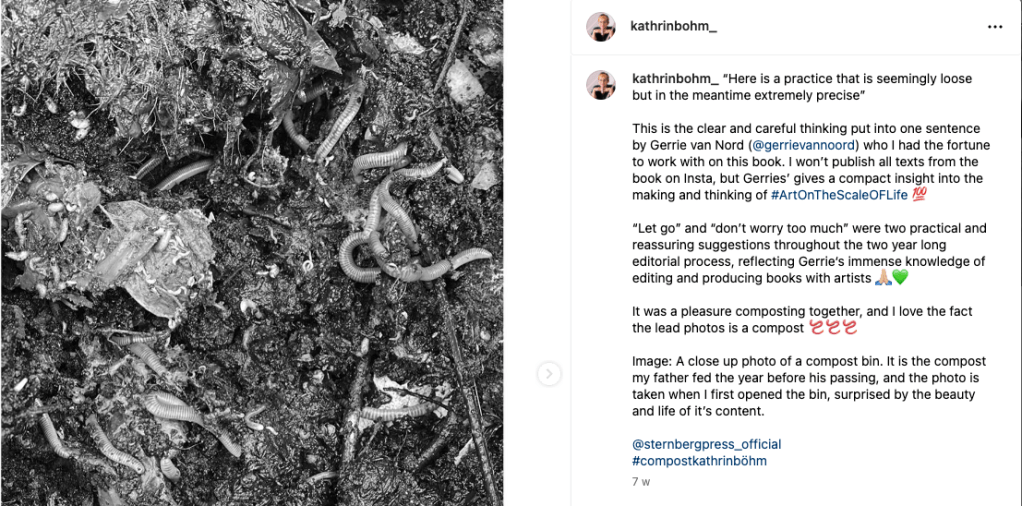 Suddenly a whole year has passed without any postings, which is indicative of different things, including the glut of work. In anticipation of lengthier updates, a short summary of odds and sods. Kathrin Böhm: Art on the Scale of Life is out in the world, including some musings by me on trying to make sense of a heap of material generated by nearly thirty years of practice within the space of a book (below Kathrin’s comment on mine), marked by several launches, with more planned for autumn 2023. In addition, multiple PARSE Journal issues have gone live, including a bumper multi-parter on ‘Violence’, one on ‘Conviviality and Contamination’ and one on ‘Citations’ due to be launched in September.